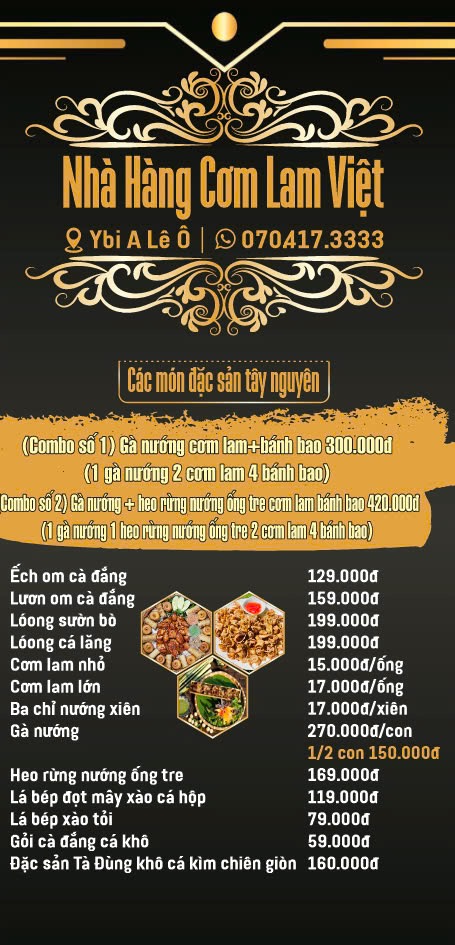 Welcome to Nhà Hàng Cơm Lam Việt, a hidden gem nestled in Gia Nghĩa, Đắk Nông, where a passion for authentic Vietnamese cuisine shines through their carefully curated menu. The standout dish here is undoubtedly the Gà Nướng Cơm Lam, featuring perfectly grilled chicken that marries beautifully with aromatic sticky rice, grilled to crispy perfection. Patrons rave about the muối vừng accompaniment, enhancing the flavor with its unique blend.